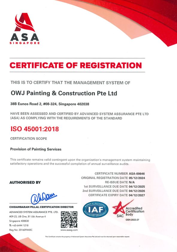 Contact Us 9481 1400 (Mr. Bryan) admin@owjpaintingservice.com.sg OWJ Painting and Construction Pte Ltd 38 Eunos Rd 2, SINGAPORE 402038